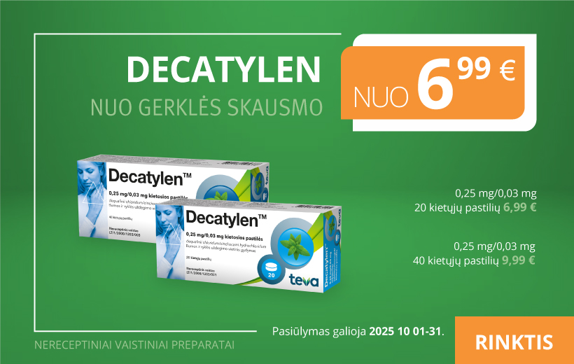 DECATYLEN™, 0,25 mg/0,03 mg, 20 kietųjų pastilių 6,99 €