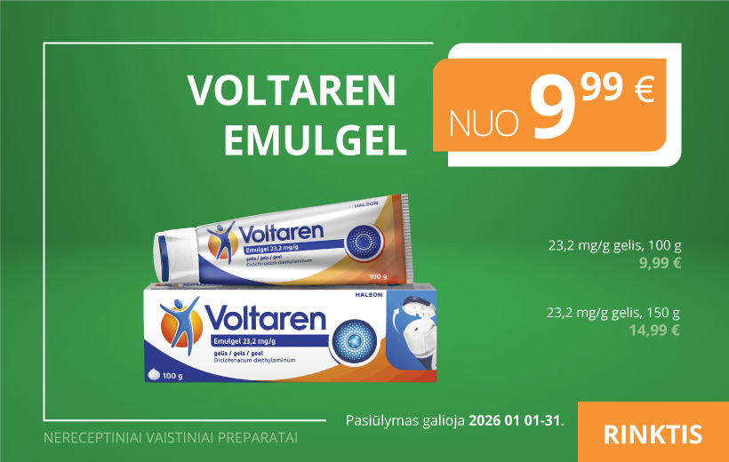 VOLTAREN EMULGEL 23,2 mg/g gelis, 150 g. 14,99€