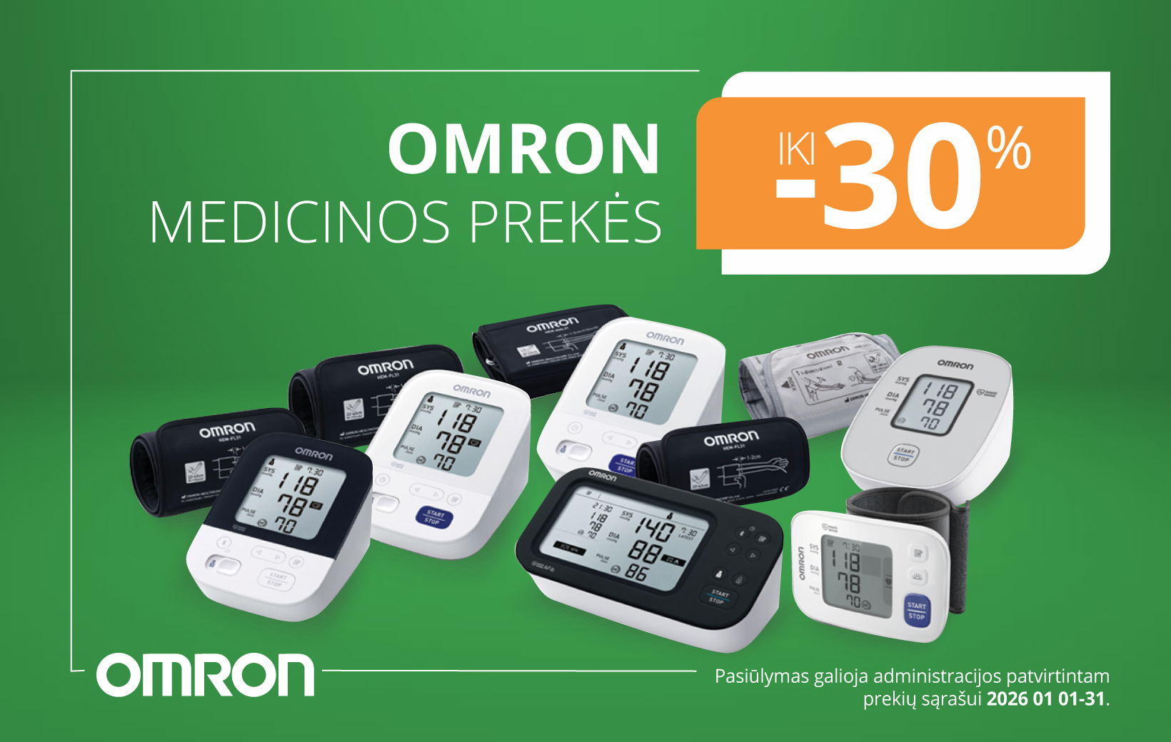 Šio mėnesio pasiūlymas medicinos priemonėms OMRON.Prekių ieškokite artimiausioje Norfos vaistinėje. Pasiūlymas galioja administracijos patvirtintam prekių sąrašui
